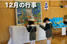 | 成道会(じょうどうえ) お釈迦さまの成道(じょうどう)(悟りを開く)は12月8日(園行事としては曜日により前後する)とされ、この日をお祝いします。 |