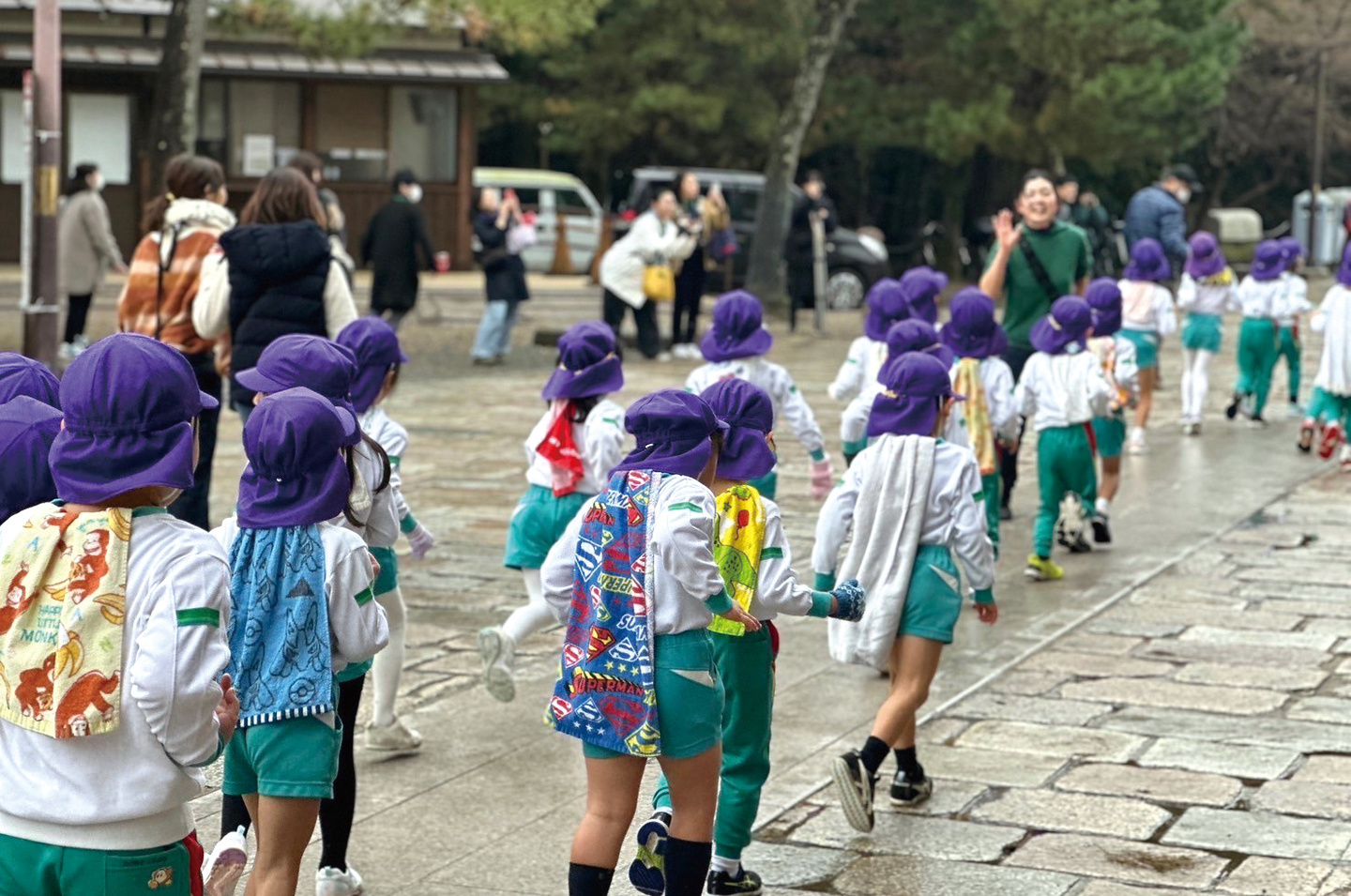 - 天平時代から一度も欠かすことなく続けられてきた修二会(しゅにえ)(お水取り)は東大寺で最大の行事です。“お松明”の参拝を中心に保護者、園児の希望者が参加できます。