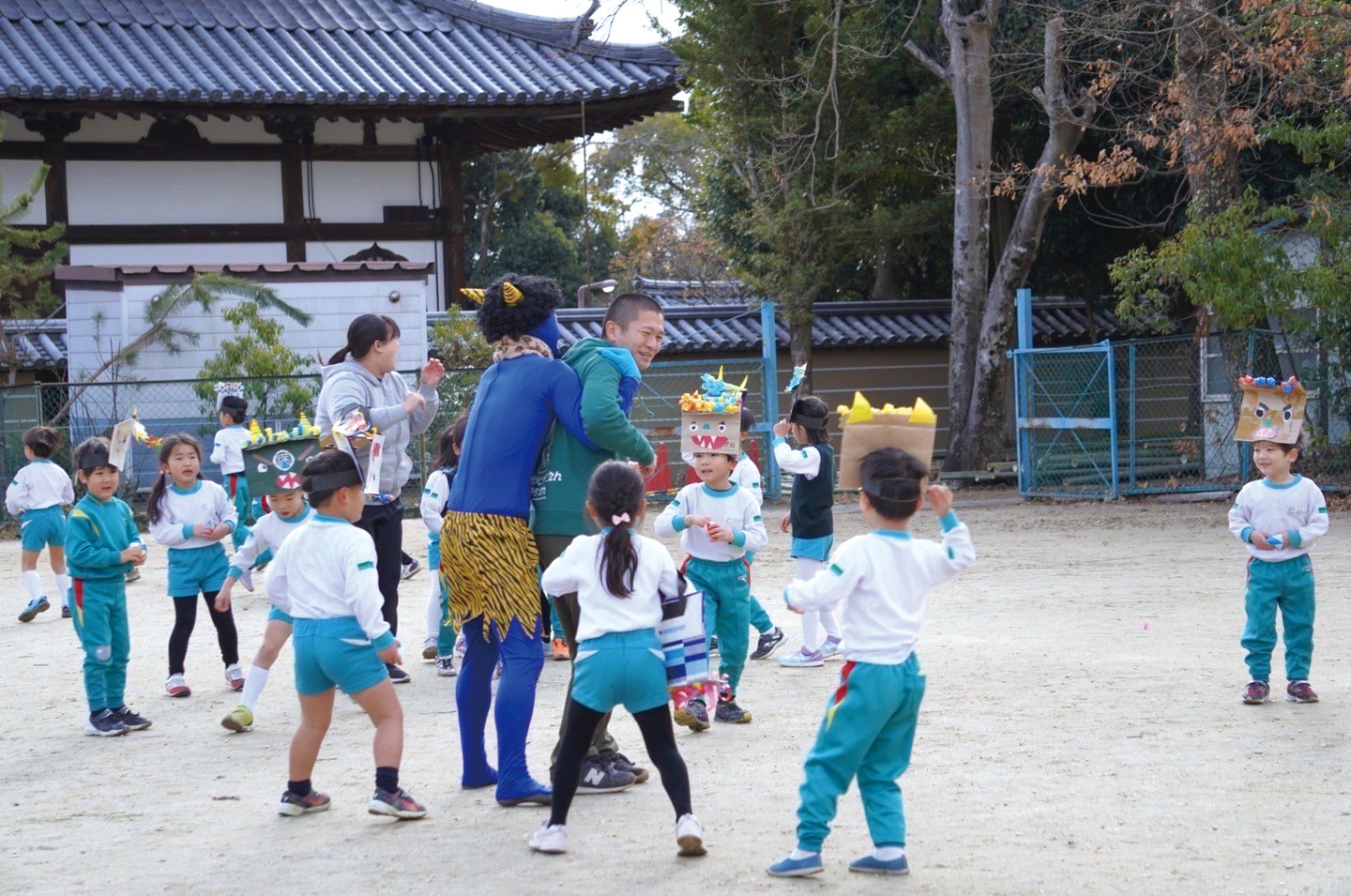 | 節分 鬼の面を作り、豆まきをします。鬼さんに豆を投げつけ、鬼を追い払います。子ども達がドキドキ、楽しみにしている行事の一つです。 |