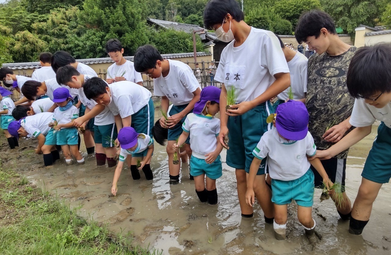| 田植え 二月堂下の田んぼで、東大寺学園中学生と一緒に田植えをします。 |