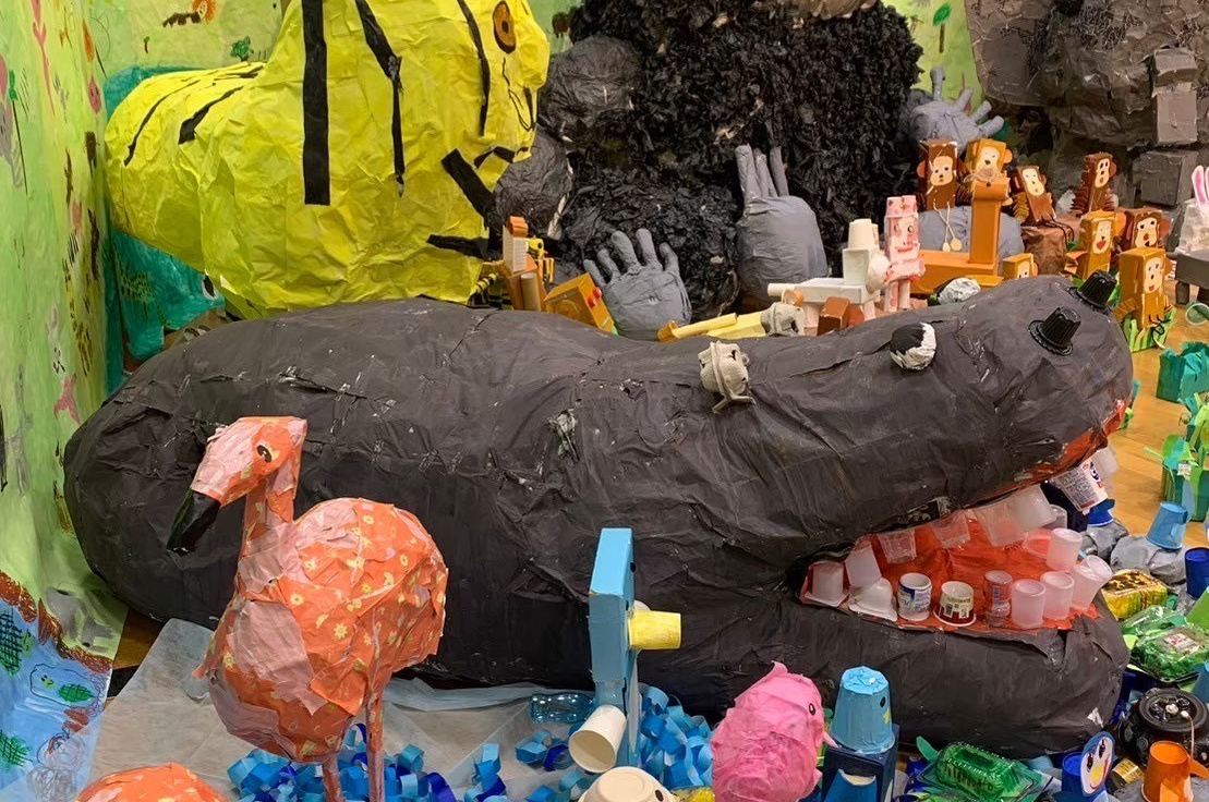 | 作品展 全園児が協力し合って、一つのテーマのもと共同製作をします。絵画では、少年組は保育室のほとけさま、年中・年長児はだいぶつさまを描き展示します。 |
